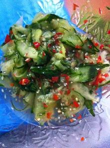 2. 凉拌茄瓜:将茄瓜切成细丝,加入蒜末、醋、盐、鸡精等调料,拌匀即可。